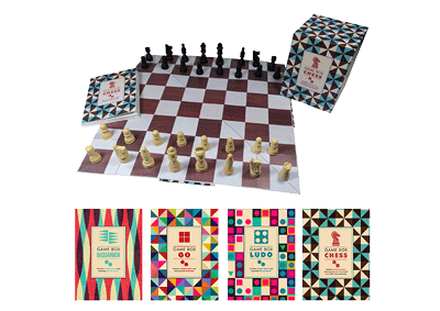 Kartongesker med magnetlås og diverse innhold som i dette tilfelle et emaljert krus og en kartongbok. Vi produserer også kruset